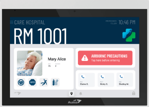 One of the Intelligent Hospital Capabilities is Integrated Bedside Technology, and we can provide this by use of our Application Station, which is a touchscreen device that can be mounted on an articulated arm.