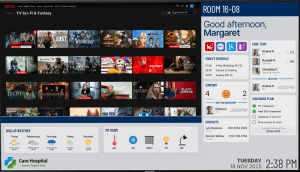 As well as being able to watch TV, patients can view information that relates to their care on the same screen. For more information on this please contact us.